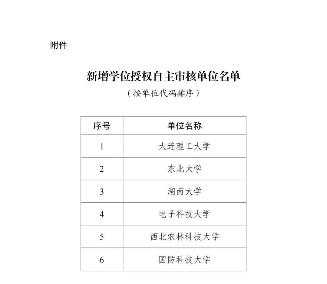 經(jīng)審議,國務院學位委員會批準了2023年度審核增列的學位授權(quán)自主審核單位名單。具體名單如下: