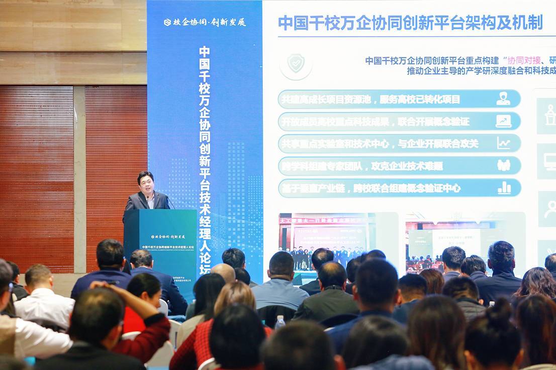 中國(guó)千校萬(wàn)企平臺(tái)是在教育部科技司等相關(guān)部門支持下,定位于落實(shí)三部委“千校萬(wàn)企”行動(dòng)計(jì)劃,探索校企協(xié)同創(chuàng)新模式。平臺(tái)堅(jiān)持公益性、非盈利定位,廣泛吸納國(guó)內(nèi)外高校、科研院所、行業(yè)龍頭企業(yè)、中小企業(yè)、區(qū)域政府,凝聚政產(chǎn)學(xué)研用多方力量,開展高校與企業(yè)精準(zhǔn)對(duì)接,協(xié)同攻關(guān)企業(yè)關(guān)鍵核心技術(shù),組織高校開展有組織科研,著力解決企業(yè)技術(shù)創(chuàng)新和產(chǎn)學(xué)研合作的堵點(diǎn)、難點(diǎn)和痛點(diǎn)。千校萬(wàn)企平臺(tái)重點(diǎn)構(gòu)建“協(xié)同對(duì)接、研發(fā)協(xié)作、科創(chuàng)人才、科技金融”四個(gè)服務(wù)體系,此次技術(shù)經(jīng)理人論壇就是平臺(tái)深入開展科創(chuàng)人才培養(yǎng)的重要活動(dòng)。下一步,平臺(tái)將聯(lián)合全國(guó)高校、企業(yè)和政府園區(qū),扎實(shí)開展技術(shù)經(jīng)理人培養(yǎng),培養(yǎng)一批高校和企業(yè)技術(shù)經(jīng)理隊(duì)伍,構(gòu)建覆蓋高校和企業(yè)的技術(shù)經(jīng)理人網(wǎng)絡(luò),為推動(dòng)產(chǎn)學(xué)研深度融合和經(jīng)濟(jì)高質(zhì)量發(fā)展貢獻(xiàn)力量。