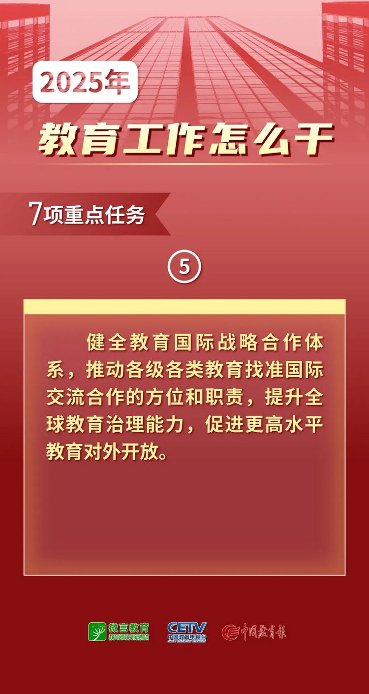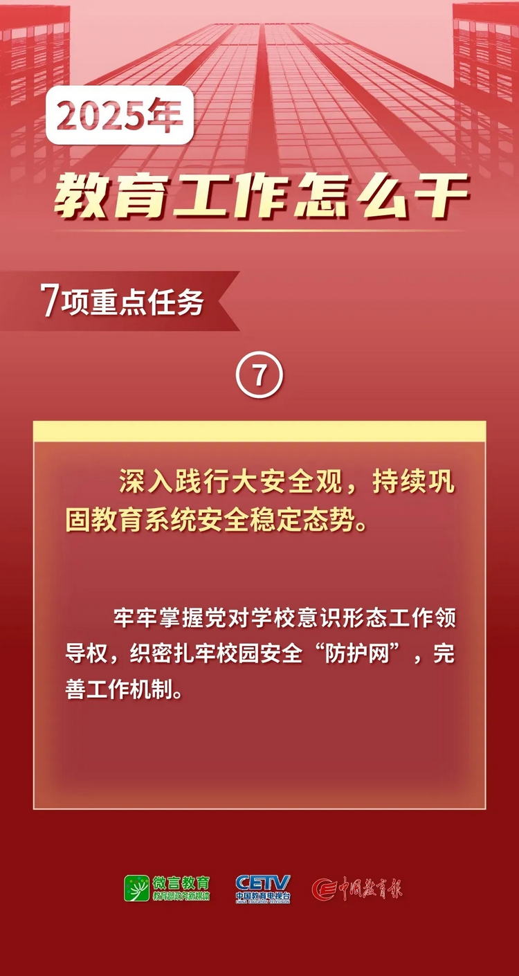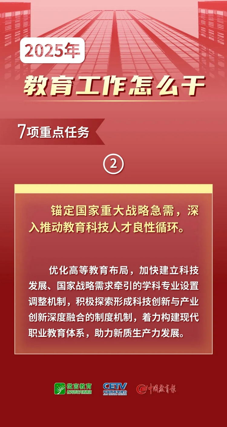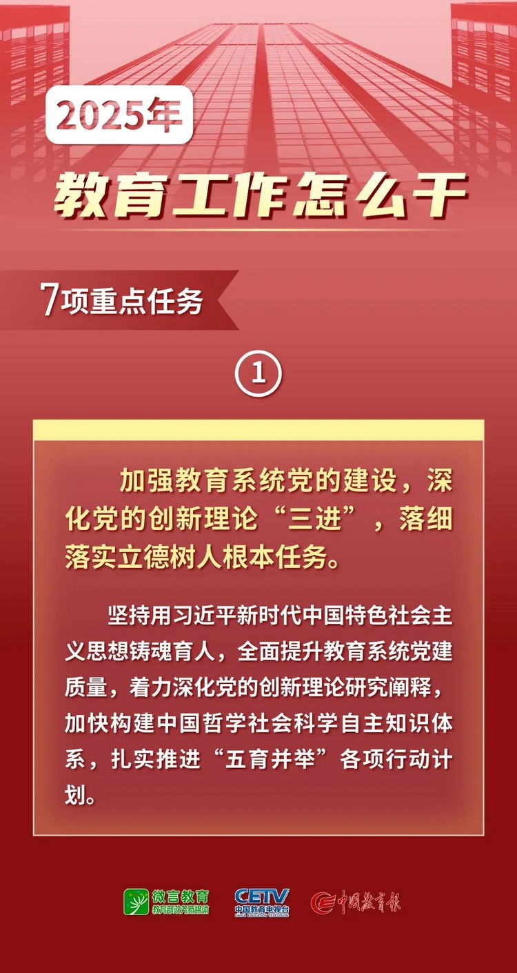 1月9日—10日,2025年全國(guó)教育工作會(huì)議在北京舉行。會(huì)議以習(xí)近平新時(shí)代中國(guó)特色社會(huì)主義思想為指導(dǎo),全面貫徹落實(shí)黨的二十大和二十屆二中、三中全會(huì)精神,深入學(xué)習(xí)貫徹全國(guó)教育大會(huì)精神和習(xí)近平總書記關(guān)于教育的重要論述,總結(jié)工作、分析形勢(shì),統(tǒng)一思想、凝聚共識(shí),圍繞組織實(shí)施教育強(qiáng)國(guó)建設(shè)規(guī)劃綱要,安排布置年度重點(diǎn)任務(wù),確保教育強(qiáng)國(guó)建設(shè)高起點(diǎn)布局、高質(zhì)量推進(jìn)。會(huì)上說(shuō)了啥,組圖為你劃重點(diǎn)——