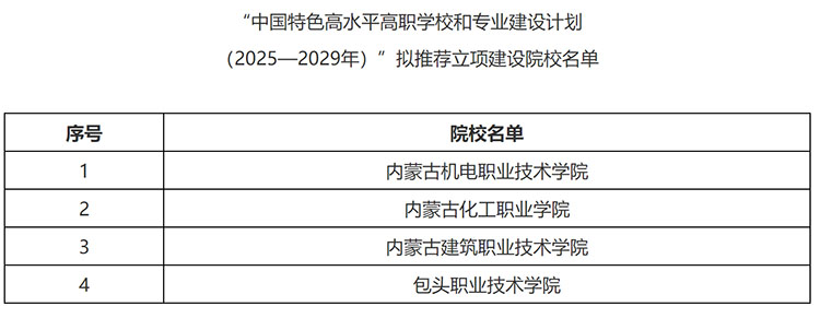 內(nèi)蒙古公示第二輪國家“雙高計劃”推薦名單
