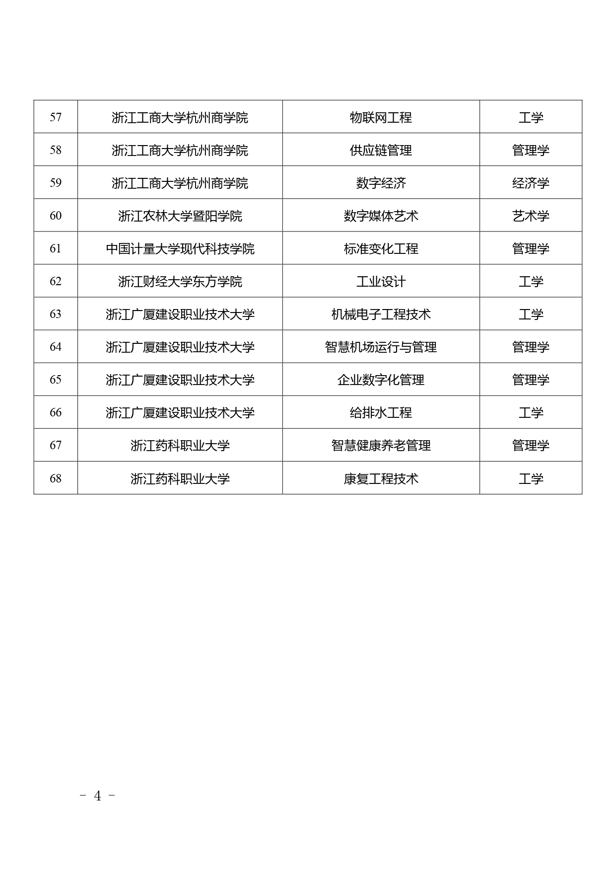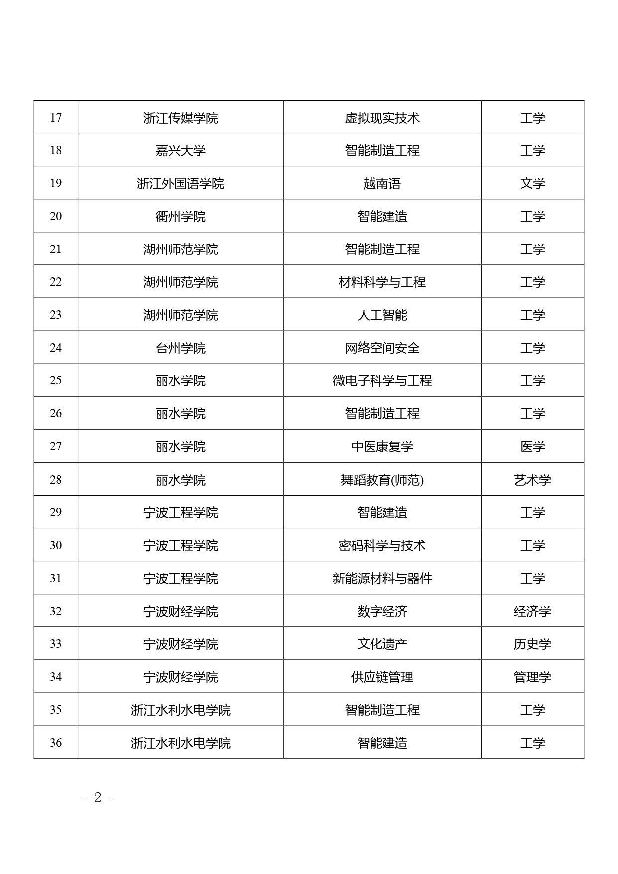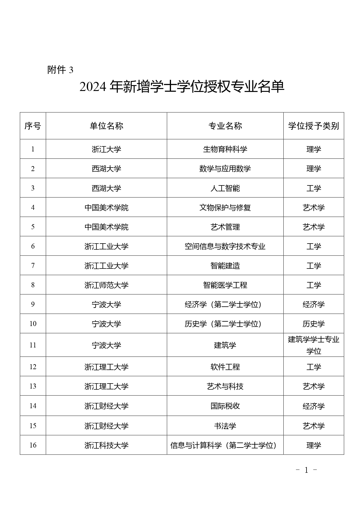 經(jīng)學(xué)校申報、專家評審、省學(xué)位委員會審議,擬新增金華職業(yè)技術(shù)大學(xué)為學(xué)士學(xué)位授予單位,其電子信息工程技術(shù)等6個專業(yè)為學(xué)士學(xué)位授權(quán)專業(yè);新增浙江機(jī)電職業(yè)技術(shù)大學(xué)為學(xué)士學(xué)位授予單位,其智能制造工程技術(shù)等6個專業(yè)為學(xué)士學(xué)位授權(quán)專業(yè);新增浙江工商大學(xué)“日語-國際商務(wù)”雙學(xué)士學(xué)位專業(yè)1個;新增浙江大學(xué)生物育種科學(xué)等68個專業(yè)(含第二學(xué)士學(xué)位專業(yè)3個、建筑學(xué)專業(yè)學(xué)位專業(yè)1個)為學(xué)士學(xué)位授權(quán)專業(yè)。