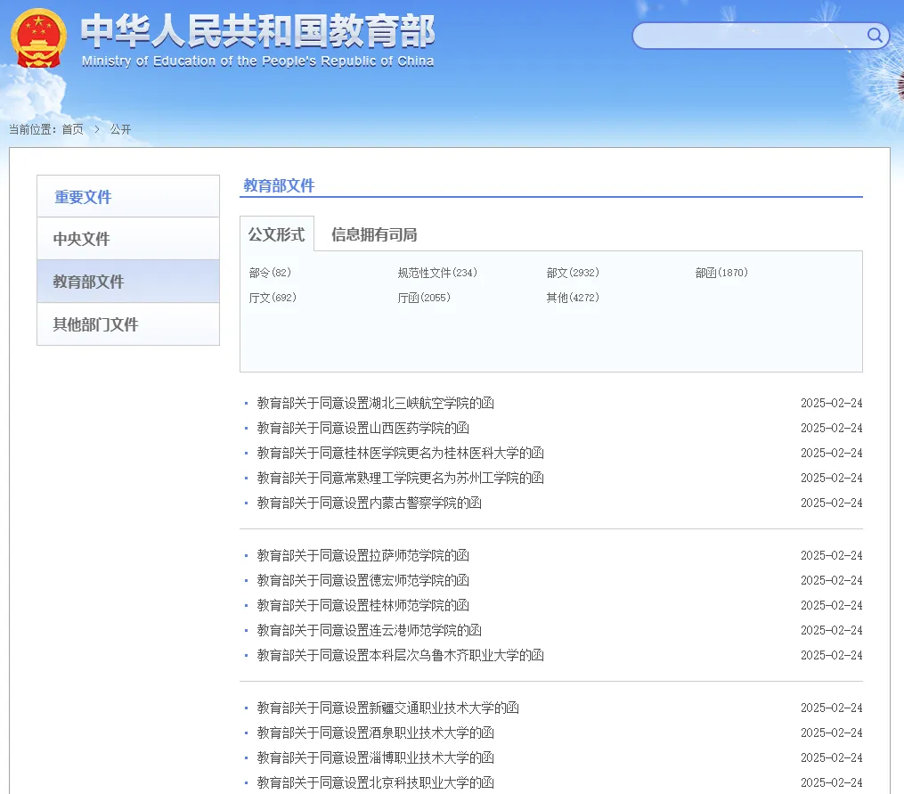 日前,教育部公布了一批高等學校設置審批、備案結果。據統(tǒng)計,本批次教育部共同意15所??聘呗氃盒U缴駷楸究茖哟卧盒?。