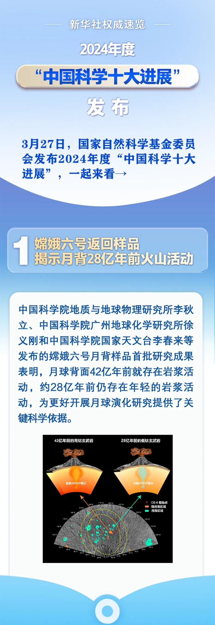 2025年3月27日,國(guó)家自然科學(xué)基金委員會(huì)黨組書(shū)記、主任竇賢康在2025中關(guān)村論壇年會(huì)開(kāi)幕式上發(fā)布了2024年度“中國(guó)科學(xué)十大進(jìn)展”,分別為:
