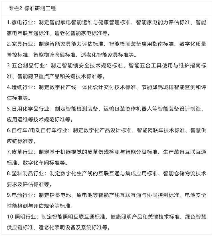 1.推動高端化躍升。深化物聯(lián)感知、智能控制、人機交互等技術在家電、家具、照明、手表等終端消費品的應用,推動智能產品跨品牌互聯(lián)互通。圍繞老人、兒童等重點人群,研究開發(fā)適老化智能家居、生活服務類機器人等智能產品。鼓勵家電、家具、皮革、五金制品等數字化基礎好的產業(yè)園區(qū),加快5G、工業(yè)互聯(lián)網、數據中心等新型基礎設施布局和規(guī)?;瘧茫苿訄@區(qū)內配套企業(yè)間數據可信共享,打造高水平數字化園區(qū)。