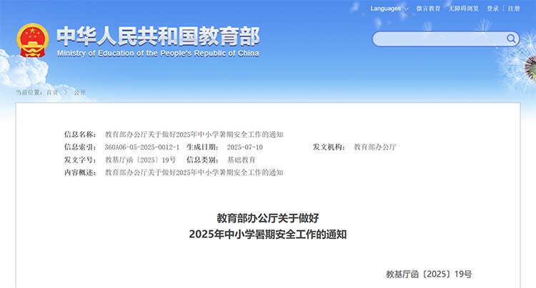 教育部辦公廳關(guān)于做好2025年中小學(xué)暑期安全工作的通知
