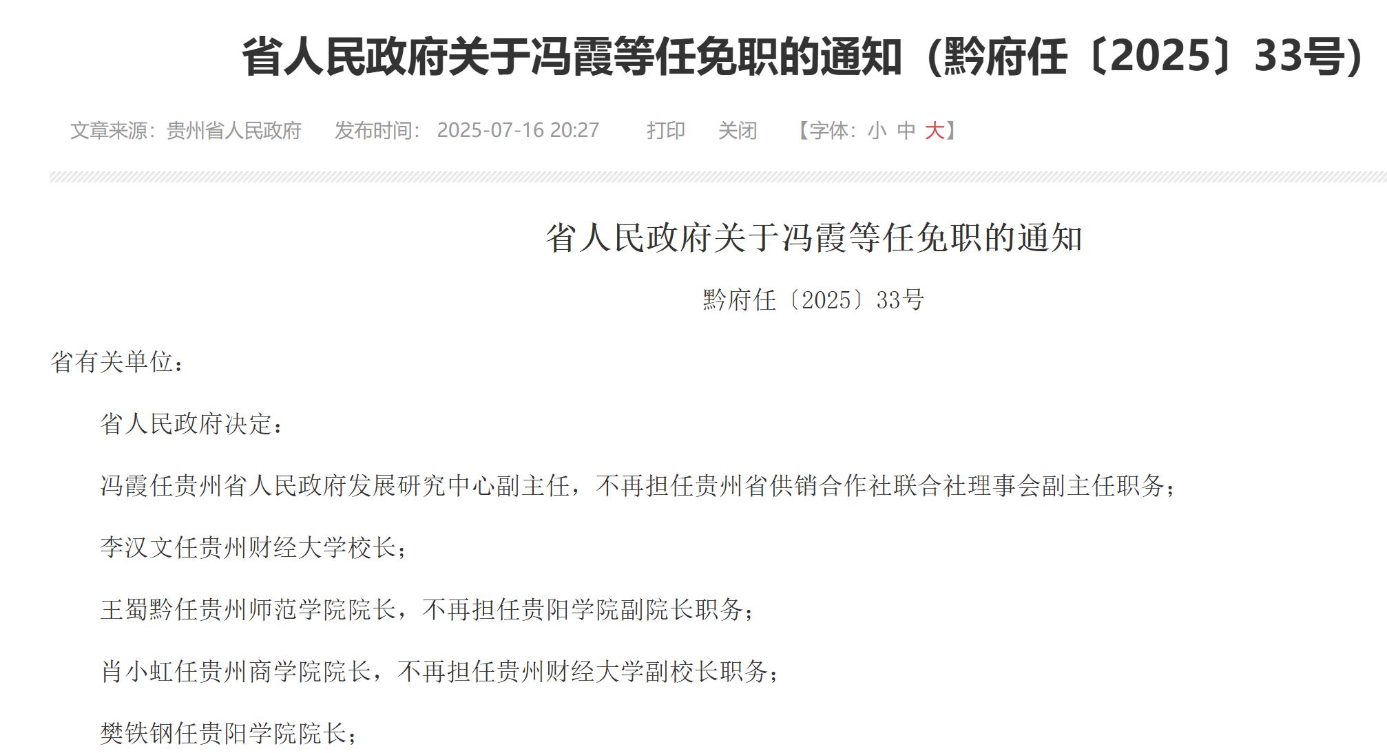 近日,貴州省政府發(fā)布一批人事任免通知,涉及多所高校。