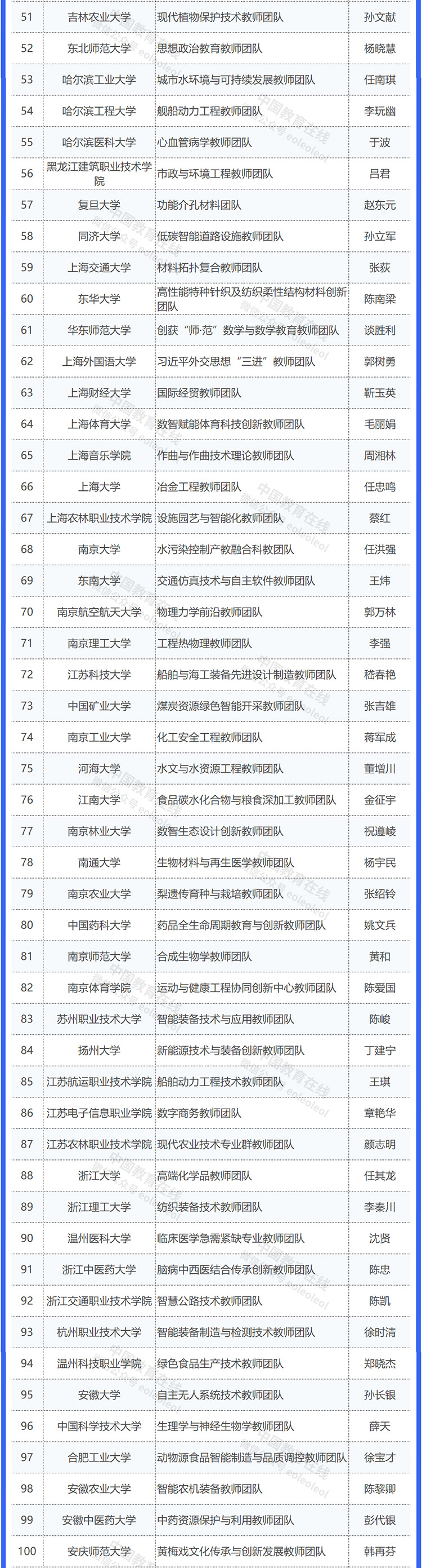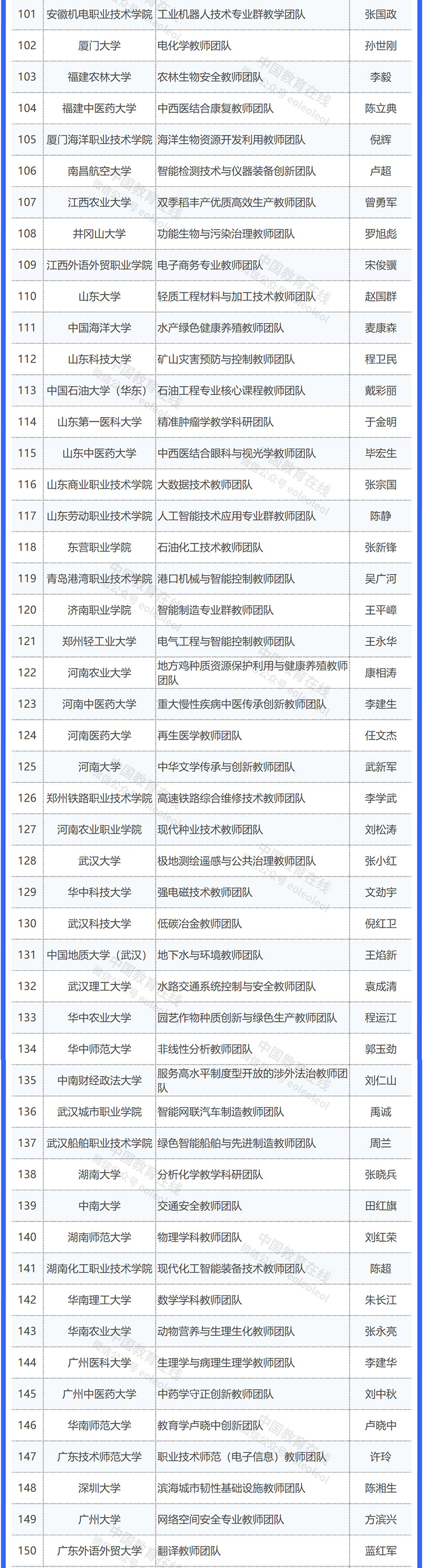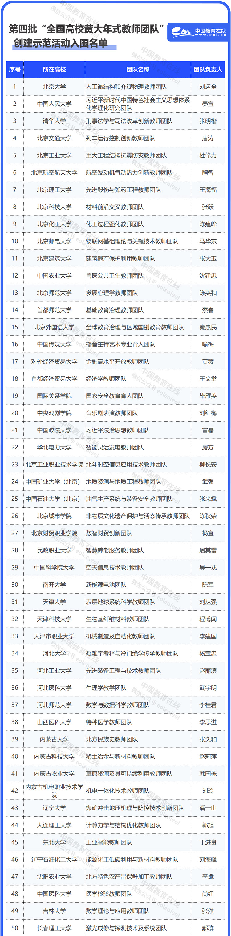 第四批“全國高校黃大年式教師團隊”創(chuàng)建示范活動入圍名單