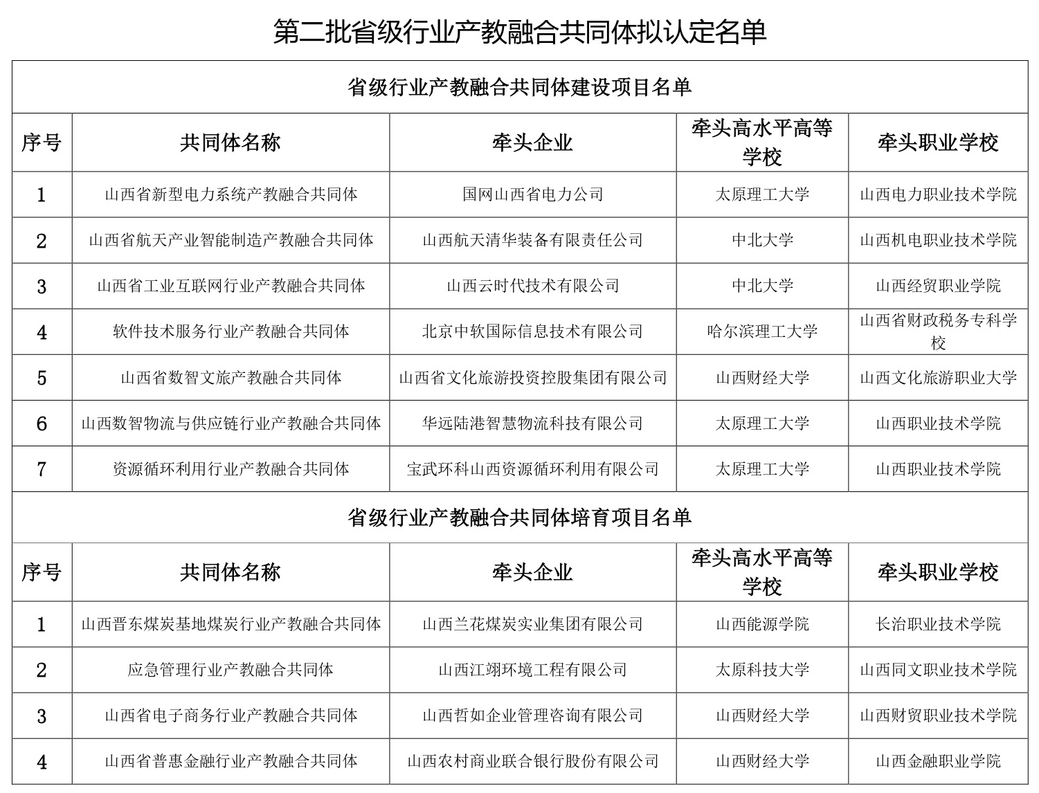山西公示第二批省級行業(yè)產(chǎn)教融合共同體擬認定名單