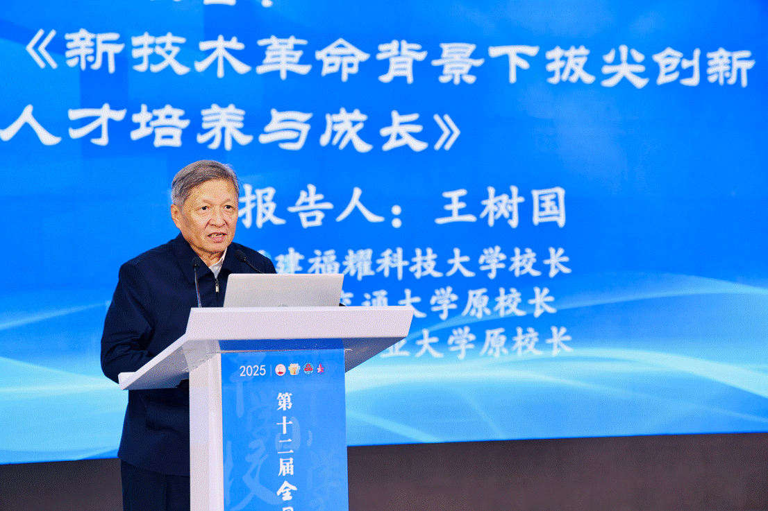 福建福耀科技大學(xué)校長、西安交通大學(xué)原校長、哈爾濱工業(yè)大學(xué)原校長王樹國作《新技術(shù)革命背景下拔尖創(chuàng)新人才培養(yǎng)與成長》的主旨報(bào)告,以習(xí)近平總書記重要講話的學(xué)習(xí)心得為原點(diǎn),剖析在新技術(shù)革命背景下教育應(yīng)該走向何方,提出建設(shè)“高起點(diǎn)、小而精、研究型、國際化”新型研究型大學(xué),以教育-科技-人才“三位一體”協(xié)同為主線,指出大學(xué)必須打破學(xué)科壁壘、深化產(chǎn)教融合,用項(xiàng)目牽引、交叉創(chuàng)新點(diǎn)燃學(xué)生創(chuàng)造力,探索走出中國特色高等教育發(fā)展之路,引領(lǐng)新技術(shù)革命背景下世界高等教育發(fā)展的潮流。