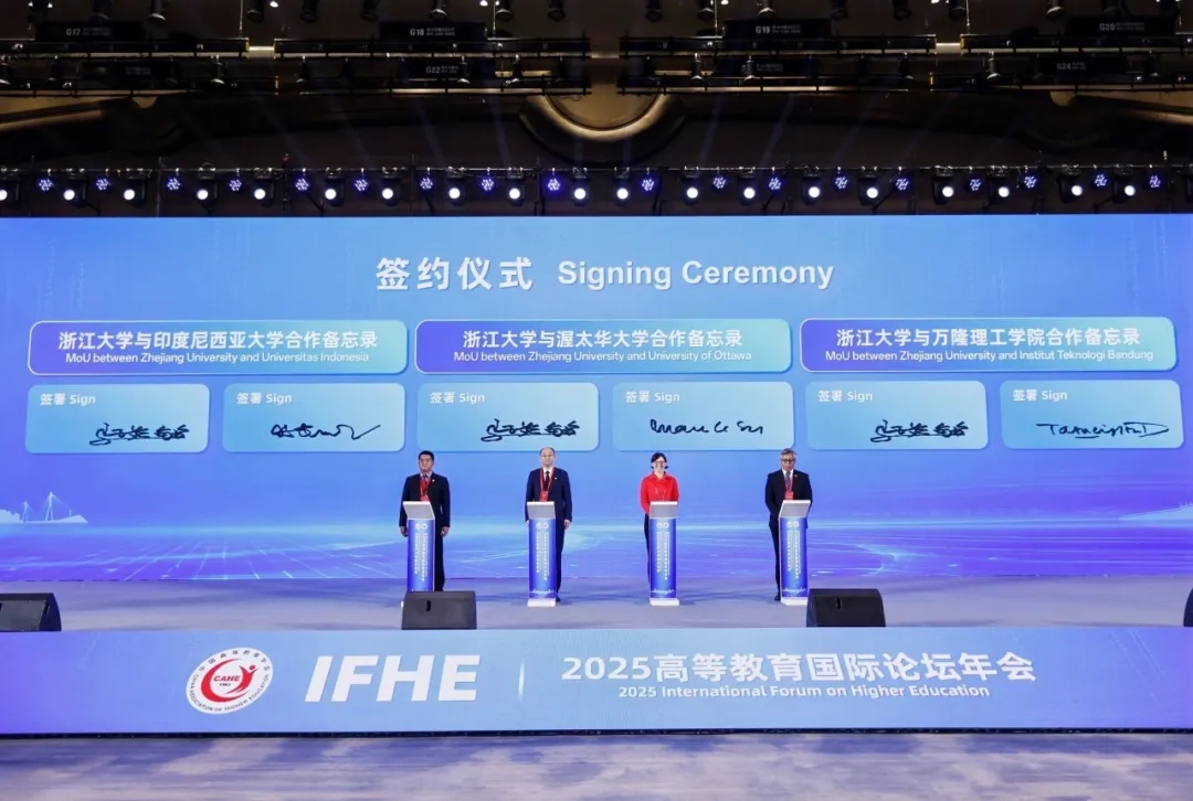 50余所中外高校在會(huì)上達(dá)成合作意向,浙江大學(xué)作為高校代表,與渥太華大學(xué)、印度尼西亞大學(xué)、萬(wàn)隆理工學(xué)院等高校簽署合作備忘錄。