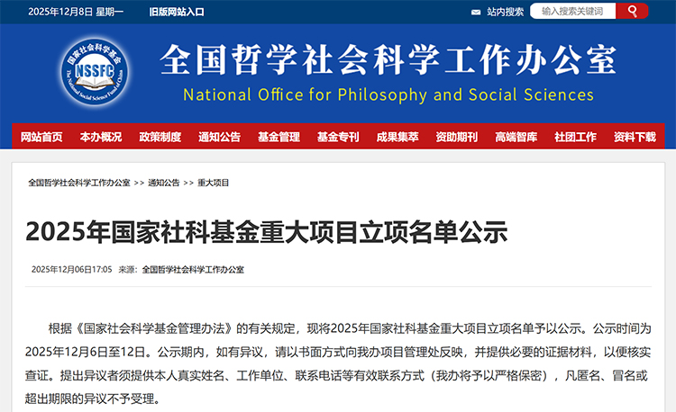 302個!2025年國家社科基金重大項目立項名單公示