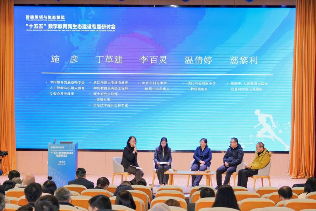 在國家“十四五”規(guī)劃圓滿收官、“十五五”規(guī)劃謀篇布局的關鍵時期,為深入貫徹落實習近平總書記關于“推進人工智能全學段教育和全社會通識教育,源源不斷地培養(yǎng)高素質人才”的重要指示精神,積極響應國家教育數(shù)字化戰(zhàn)略行動部署,“‘十五五’數(shù)字教育新生態(tài)建設專題研討會”12月27日在南京市雨花臺區(qū)南站中小學召開。會議由中國教育發(fā)展戰(zhàn)略學會教育政策與規(guī)劃專業(yè)委員會與江蘇省教育信息化與數(shù)據(jù)管理中心聯(lián)合主辦,以“智能引領與生態(tài)重塑”為主題,匯聚來自京、滬、渝,以及冀、晉、蒙、浙、皖、閩、贛、魯、湘、粵、桂、瓊、川、甘等17個省(區(qū)、市)教育行政部門負責人、高校專家學者及一線校長教師300多人參會。與會代表聚焦人工智能時代教育發(fā)展的根本性、前瞻性問題,重點圍繞“未來人才核心素養(yǎng)如何界定”“教師角色與能力如何重塑”“技術應用如何兼顧公平與倫理”等議題展開深入研討,共商發(fā)展路徑,凝聚行動共識。