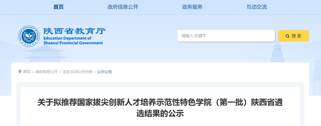 12月26日,陜西省教育廳發(fā)布《關(guān)于擬推薦國家拔尖創(chuàng)新人才培養(yǎng)示范性特色學院(第一批)陜西省遴選結(jié)果的公示》。