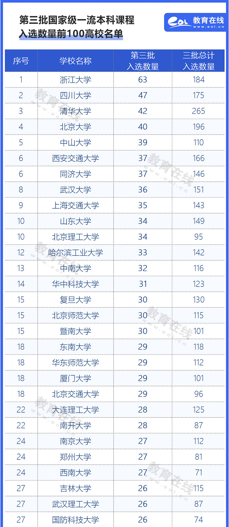 第三批國家級一流本科課程認定結果公布:浙江大學63門入選,位列第一