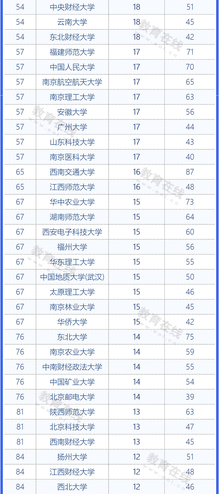 國家級一流本科課程獲批數(shù)量前100高校如下: