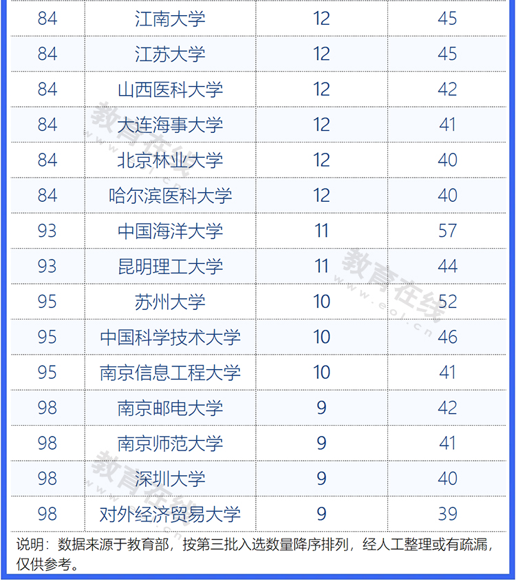 日前,各高校陸續(xù)官宣入選第三批國家級一流本科課程的課程名稱,我們對部分高校進行匯總如下:
