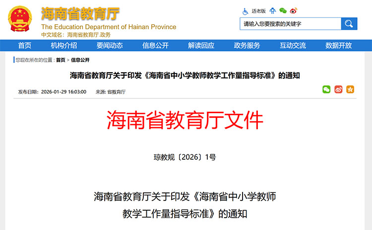 近日,海南省教育廳印發(fā)《海南省中小學(xué)教師教學(xué)工作量指導(dǎo)標(biāo)準(zhǔn)》(以下簡稱《指導(dǎo)標(biāo)準(zhǔn)》),進(jìn)一步規(guī)范課時基準(zhǔn),保障開齊開足課程。