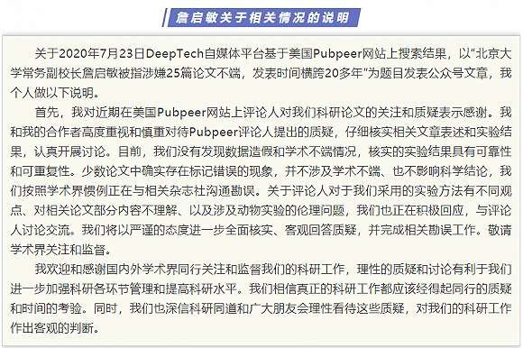 近日,詹啟敏院士在其個(gè)人微信公眾號(hào)進(jìn)行回應(yīng),表示:“目前,我們沒有發(fā)現(xiàn)數(shù)據(jù)造假和學(xué)術(shù)不端情況,核實(shí)的實(shí)驗(yàn)結(jié)果具有可靠性和可重復(fù)性。少數(shù)論文中確實(shí)存在標(biāo)記錯(cuò)誤的現(xiàn)象,并不涉及學(xué)術(shù)不端、也不影響科學(xué)結(jié)論,我們按照學(xué)術(shù)界慣例正在與相關(guān)雜志社溝通勘誤?!?/p>