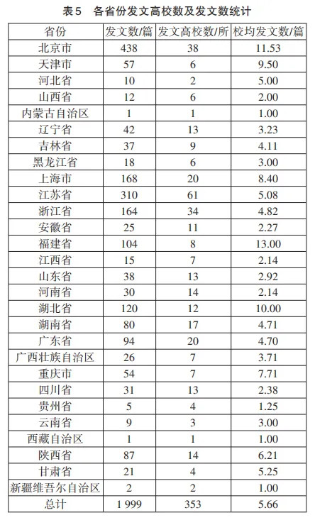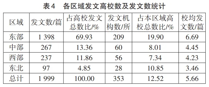 (五)發(fā)文高校區(qū)域分布特點(diǎn)