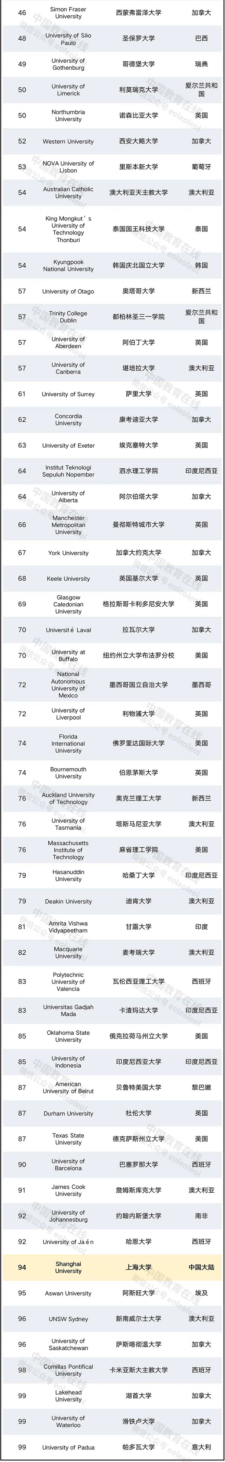 上海大學(xué)首次參加影響力排名,總排名位列世界第94名,是總排名前100名中唯一的中國大陸高校代表