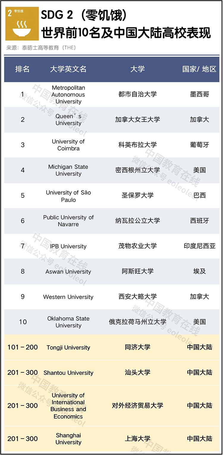 在2021年泰晤士高等教育(THE)世界大學(xué)影響力排名中記錄了全球1240所大學(xué)在實現(xiàn)聯(lián)合國可持續(xù)發(fā)展目標(biāo)(SDGs)方面的工作,共產(chǎn)生18個排名:一個總排名和17個SDG的單項排名