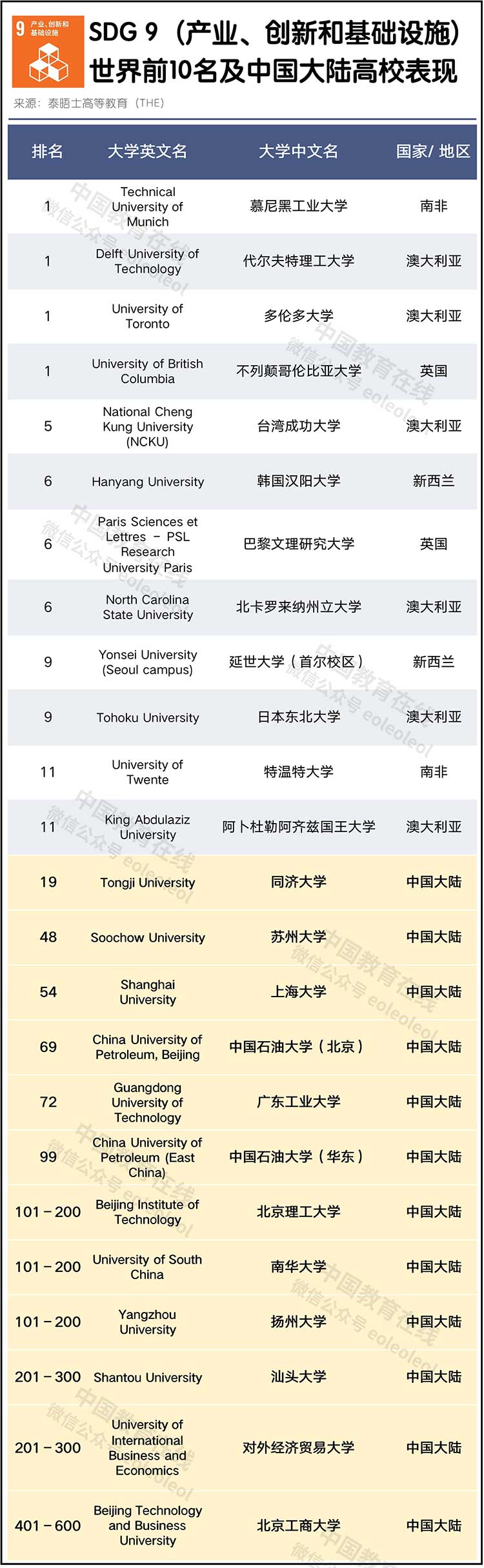 同濟(jì)大學(xué)則在SDG9(產(chǎn)業(yè)、創(chuàng)新和基礎(chǔ)設(shè)施)單項排名中位列世界前20名(第19名),并在SDG13(氣候行動)單項排名中,從去年的101-200區(qū)間攀升至全球第21位。