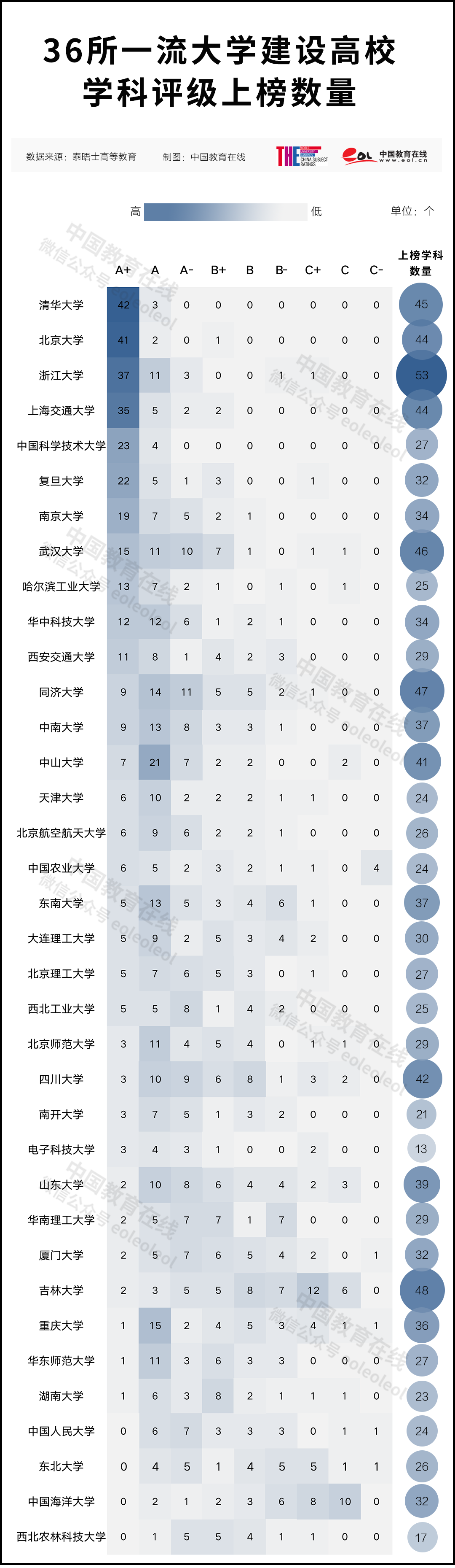 據(jù)統(tǒng)計(jì),此次參與評(píng)級(jí)的90所中國(guó)大陸高校中,包括一流大學(xué)建設(shè)高校36所,一流學(xué)科建設(shè)高校32所,非“雙一流”建設(shè)高校22所。