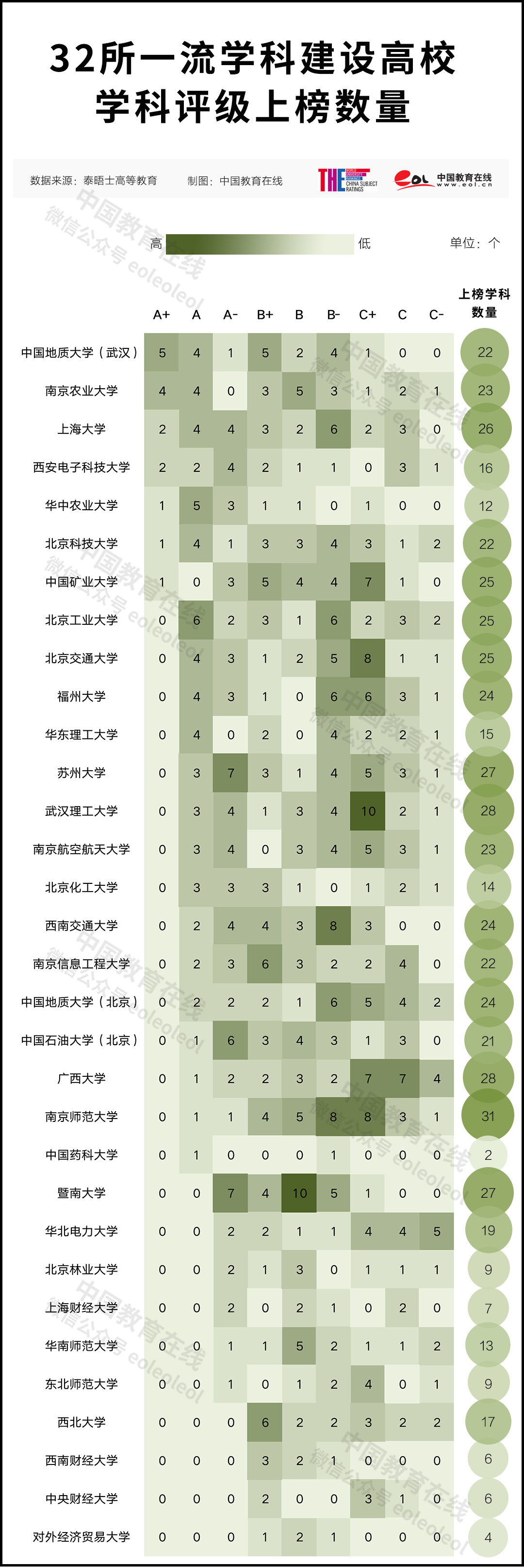 有7所一流學(xué)科建設(shè)高校有學(xué)科入選A+,分別是中國(guó)地質(zhì)大學(xué)(武漢)、南京農(nóng)業(yè)大學(xué)、上海大學(xué)、西安電子科技大學(xué)、華中農(nóng)業(yè)大學(xué)、北京科技大學(xué)和中國(guó)礦業(yè)大學(xué)。