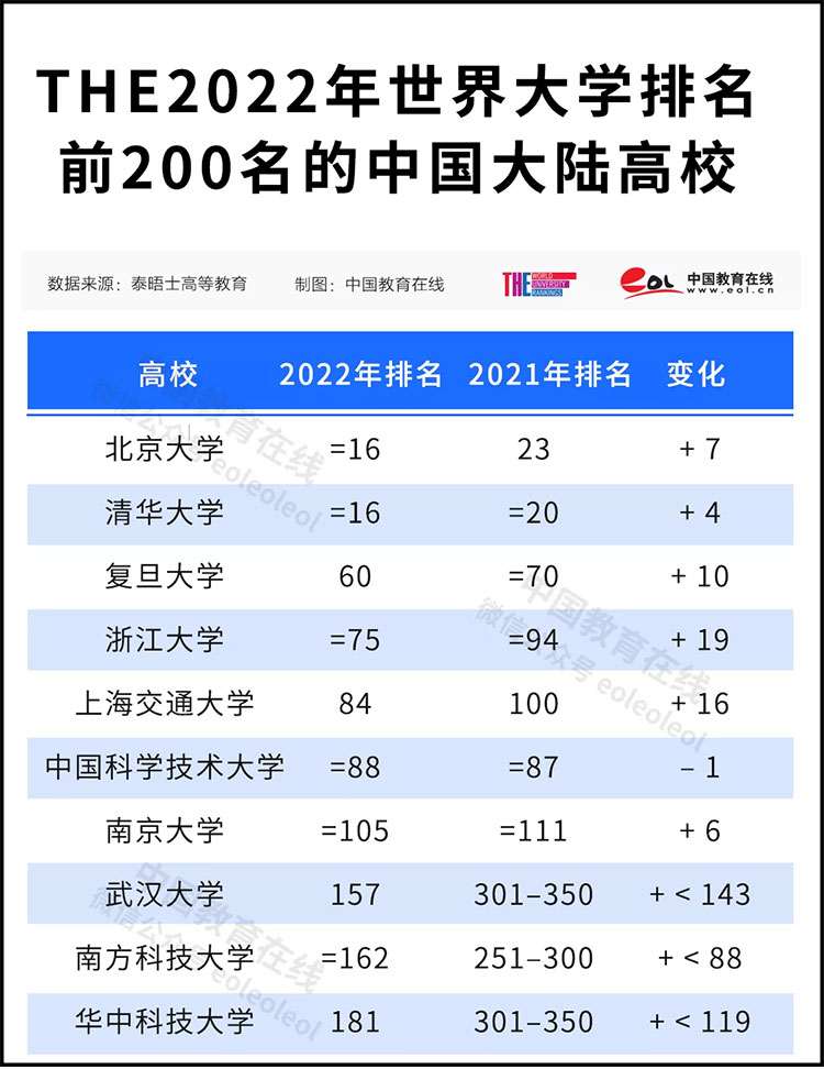 盡管受到全球疫情的影響,但中國大陸高校在泰晤士高等教育世界大學(xué)排名中繼續(xù)提升。讓我們一起見證后疫情時代世界的變化,見證中國大陸能否挑戰(zhàn)美國和英國在全球 10 強中的長期領(lǐng)先地位,這將是一件非常有趣的事情。