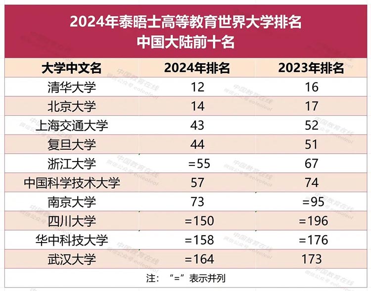 9月27日,泰晤士高等教育發(fā)布了高等教育世界大學(xué)排名,該排名顯示:兩所中國大陸的高?!迦A大學(xué)和北京大學(xué)——正在向泰晤士高等教育世界大學(xué)排名前十名邁進(jìn)。