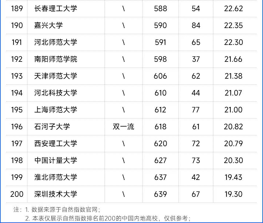 最新自然指數(shù)排名中國內(nèi)地高校Top200名單如下: