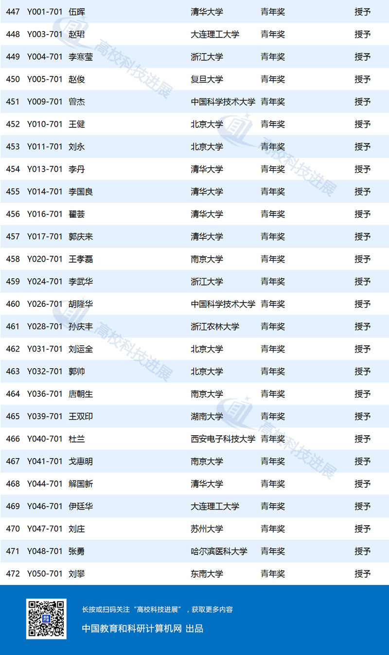 9月3日,教育部科技司通過(guò)教育部網(wǎng)站對(duì)外公示了2019年度高等學(xué)校科學(xué)研究?jī)?yōu)秀成果獎(jiǎng)(科學(xué)技術(shù))通訊評(píng)審?fù)ㄟ^(guò)項(xiàng)目和青年科學(xué)獎(jiǎng)人選,446個(gè)通用項(xiàng)目和26位青年科學(xué)獎(jiǎng)通過(guò)評(píng)審。