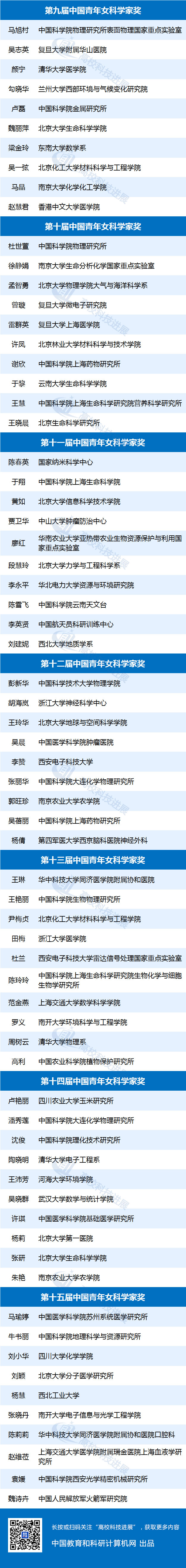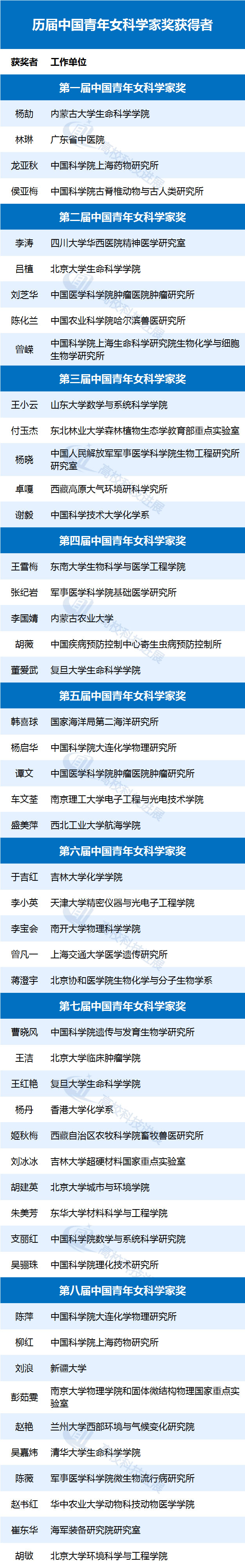 附:歷屆中國青年女科學(xué)家獎獲得者