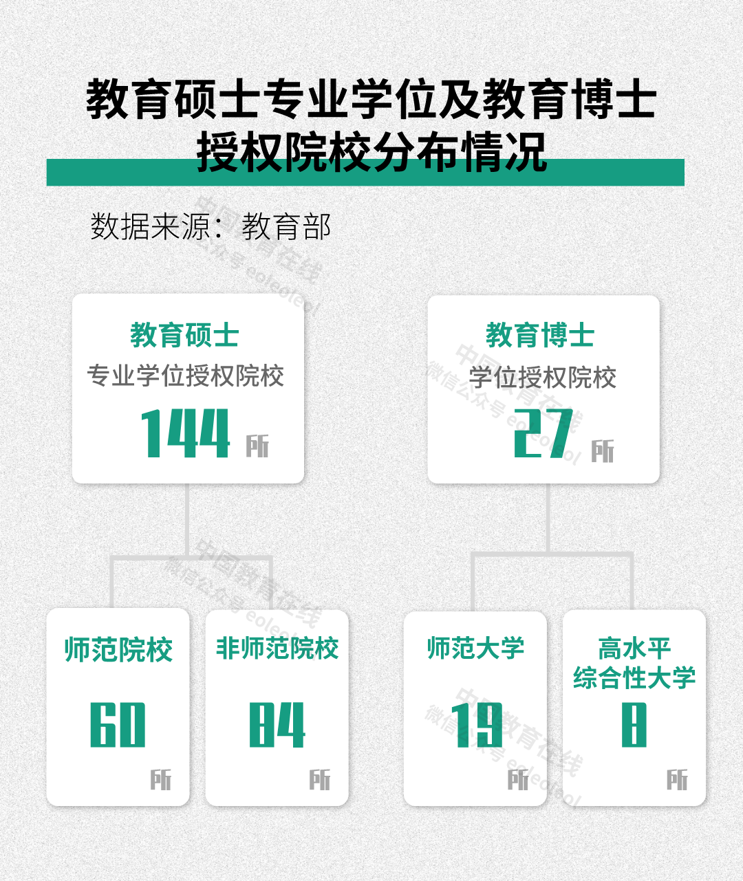 我國具有教育碩士專業(yè)學位授權院校144所,具有教育博士學位授權院校27所。