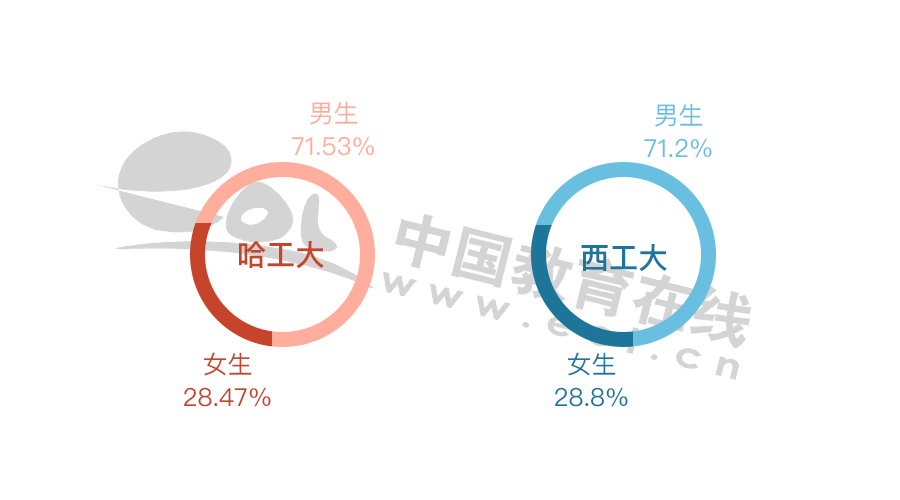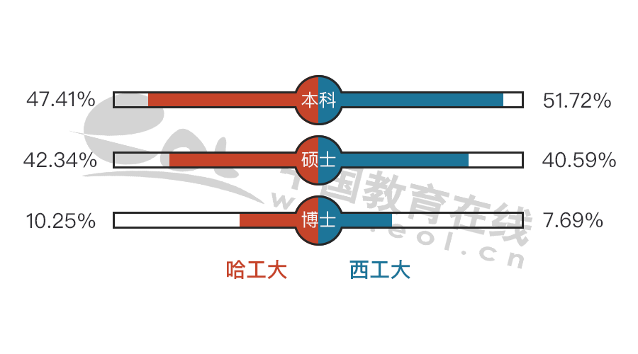 哈工大和西工大各個學(xué)歷畢業(yè)生比例基本相同。