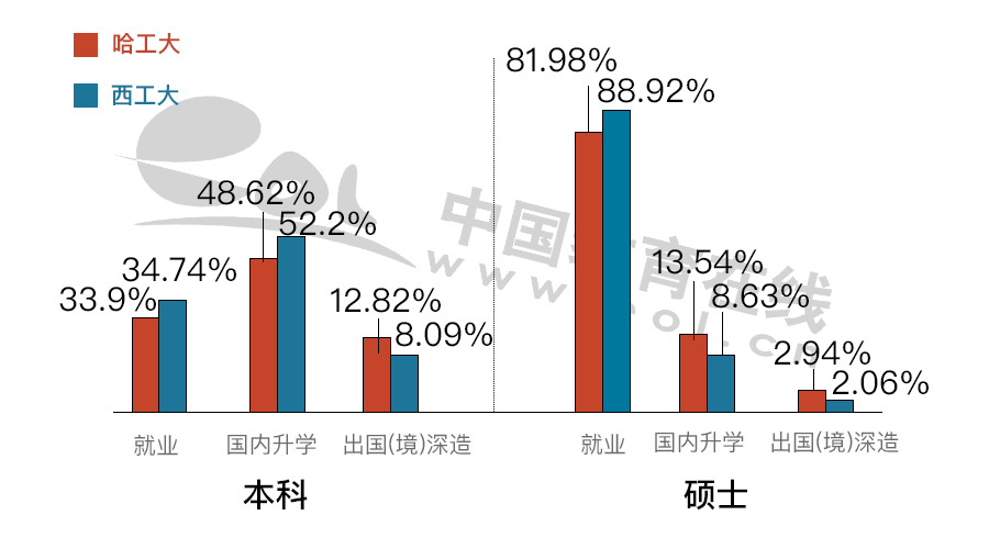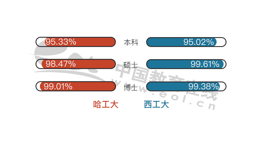 整體來看,哈爾濱工業(yè)大學(xué)和西北工業(yè)大學(xué)就業(yè)率基本沒有區(qū)別。