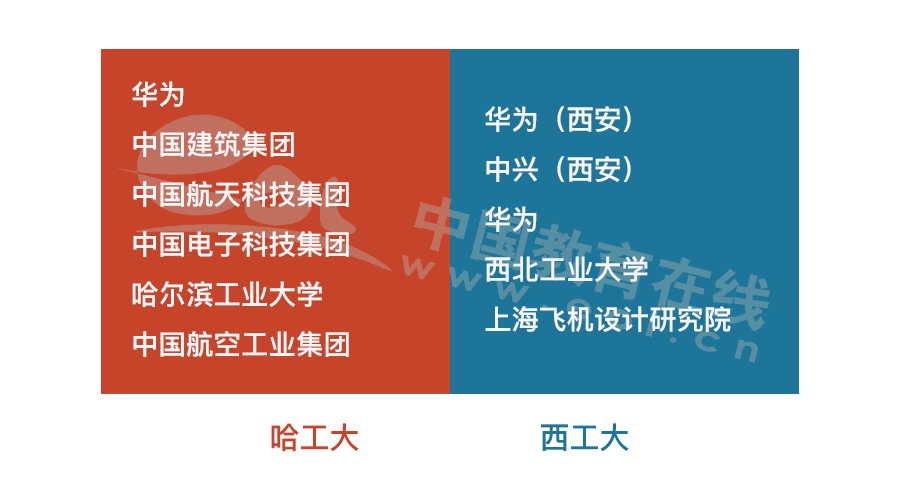 哈工大和西工大,一個在北,一個在西。除了優(yōu)勢學(xué)科不同之外,地理位置也對就業(yè)產(chǎn)生了一定的影響。