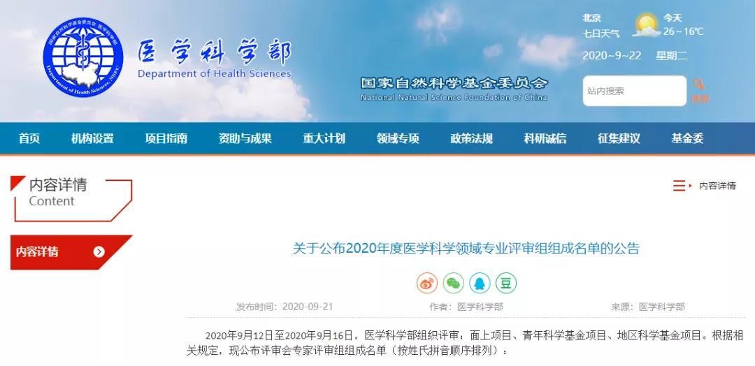 ▲ 國家自然科學(xué)基金委醫(yī)學(xué)科學(xué)部網(wǎng)站截圖