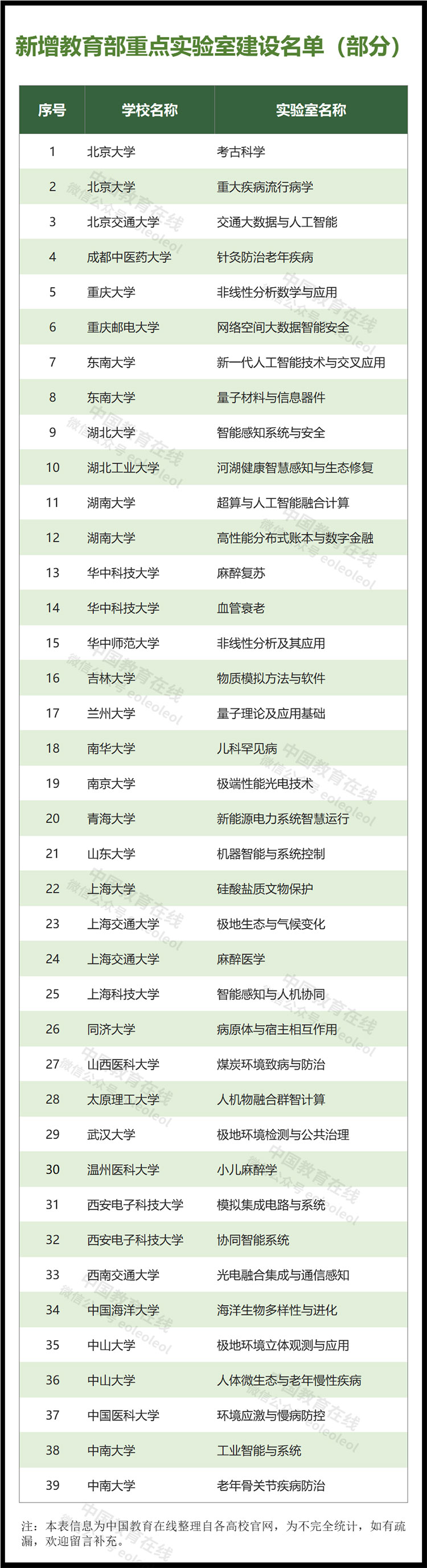 據(jù)中國(guó)教育在線不完全統(tǒng)計(jì),截至目前,已有超30所高校官宣獲批教育部重點(diǎn)實(shí)驗(yàn)室。