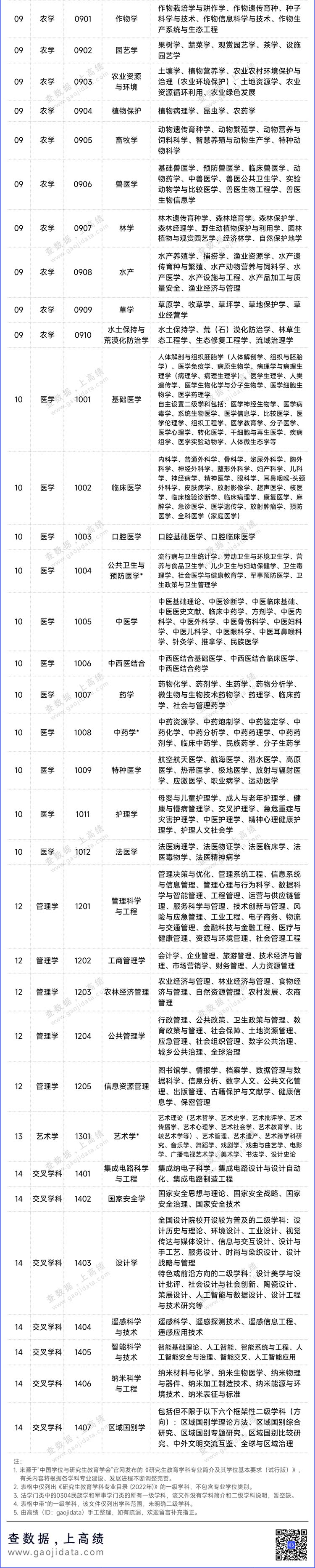 2. 表格中僅列出《研究生教育學(xué)科專業(yè)目錄 (2022年)》的一級學(xué)科,不包含專業(yè)學(xué)位類別。