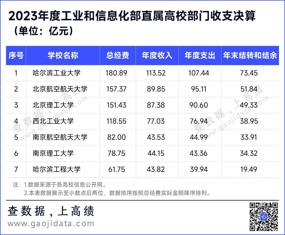 8月14日查詢各高校官網(wǎng)發(fā)現(xiàn),7所工業(yè)和信息化部直屬高校已公布2023年度的部門收支決算。