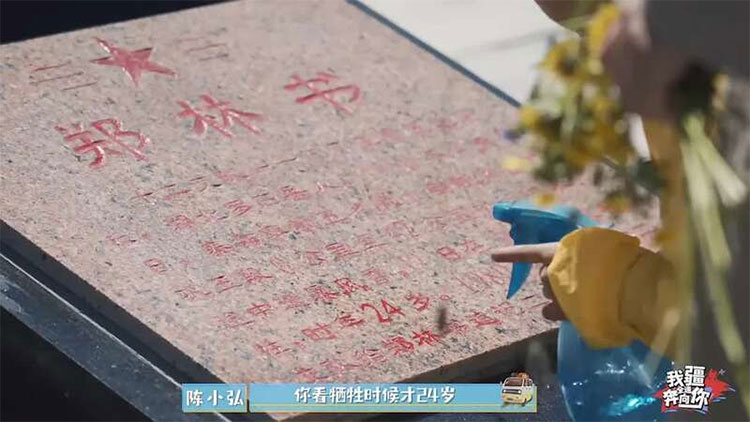 在喬爾瑪烈士陵園里,兄妹倆陪著爸爸認真地干活。當掃到鄭林書的墓碑前時,哥哥陳煜昊小聲向賀瑤講起了鄭林書爺爺?shù)墓适隆?/p>