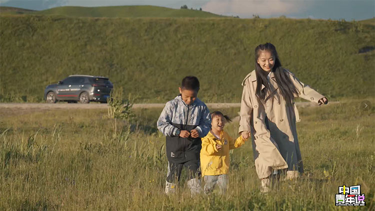 夕陽下,賀瑤拉著兄妹倆在美麗的那拉提草原上奔跑,情不自禁地想起那句:“讓我們的子孫后代享受前人披荊斬棘的幸福吧。”
