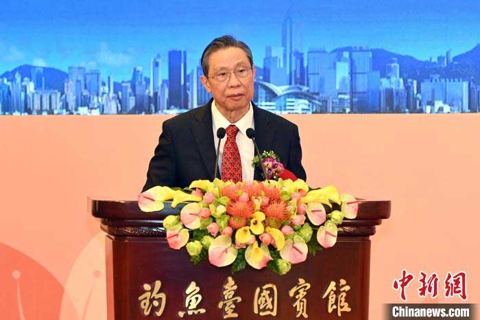 2020年度何梁何利科技成就獎獲得者鐘南山院士在頒獎大會上發(fā)言。(科技部 供圖)