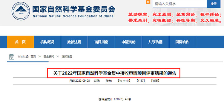 9月8日,國(guó)家自然科學(xué)基金委員會(huì)官網(wǎng)發(fā)布了《關(guān)于2022年國(guó)家自然科學(xué)基金集中接收申請(qǐng)項(xiàng)目評(píng)審結(jié)果的通告》。