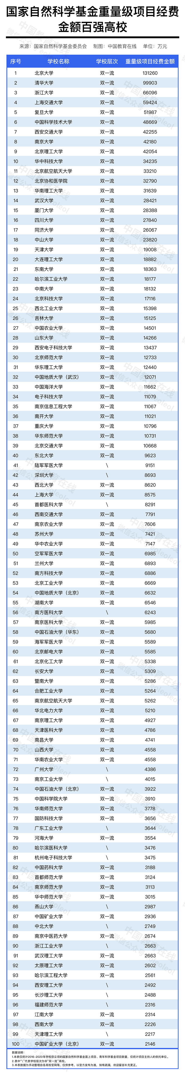 本文對(duì)2016-2020五年期間高校獲批國(guó)家自科基金重量級(jí)項(xiàng)目經(jīng)費(fèi)進(jìn)行了統(tǒng)計(jì),包含學(xué)校獲立項(xiàng)的國(guó)家自然科學(xué)基金基礎(chǔ)科學(xué)中心項(xiàng)目、國(guó)家重大科研儀器研制項(xiàng)目、國(guó)家自然科學(xué)基金重大項(xiàng)目和重點(diǎn)項(xiàng)目的獲批經(jīng)費(fèi)。