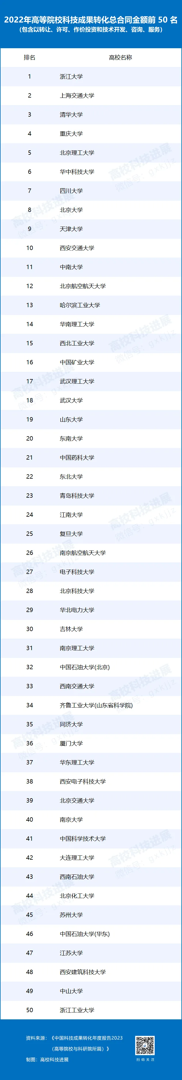 5所地方高校躋身2022年科技成果轉(zhuǎn)化Top50