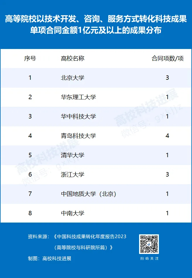 8所高校15項合同,單項合同金額超1億元(以技術(shù)開發(fā)、咨詢、服務(wù)方式)