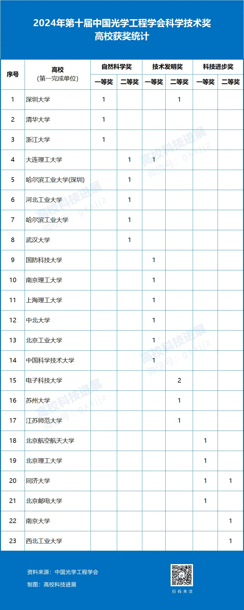 自然科學(xué)獎中,清華大學(xué)、浙江大學(xué)、深圳大學(xué)各有1項斬獲一等獎;哈爾濱工業(yè)大學(xué)(深圳)、河北工業(yè)大學(xué)、哈爾濱工業(yè)大學(xué)、武漢大學(xué)、大連理工大學(xué)各有1項獲得二等獎。