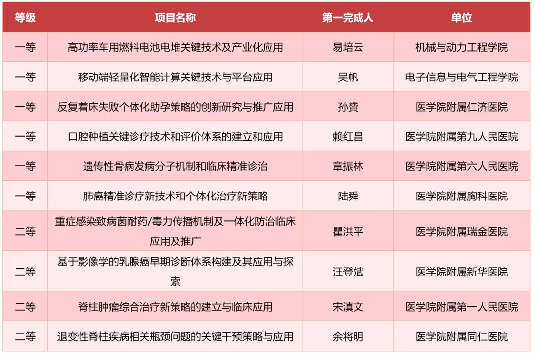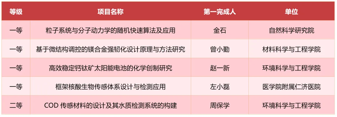 2023年度上海市科學技術(shù)獎授獎214項(人),其中科技功臣獎2人、青年科技杰出貢獻獎10人、自然科學獎46項、技術(shù)發(fā)明獎29項、科技進步獎114項、科學技術(shù)普及獎9項、國際科技合作獎4人。上海交通大學共有25項第一完成單位成果(人)獲得表彰,其中一等獎16項,二等獎6項,醫(yī)學院附屬第一人民醫(yī)院林浩東教授榮獲青年科技杰出貢獻獎,數(shù)學科學學院岳爾根·約斯特教授和醫(yī)學院附屬仁濟醫(yī)院雷內(nèi)·貝爾納茨教授榮獲國際科技合作獎,一等獎獲獎數(shù)蟬聯(lián)上海市首位。